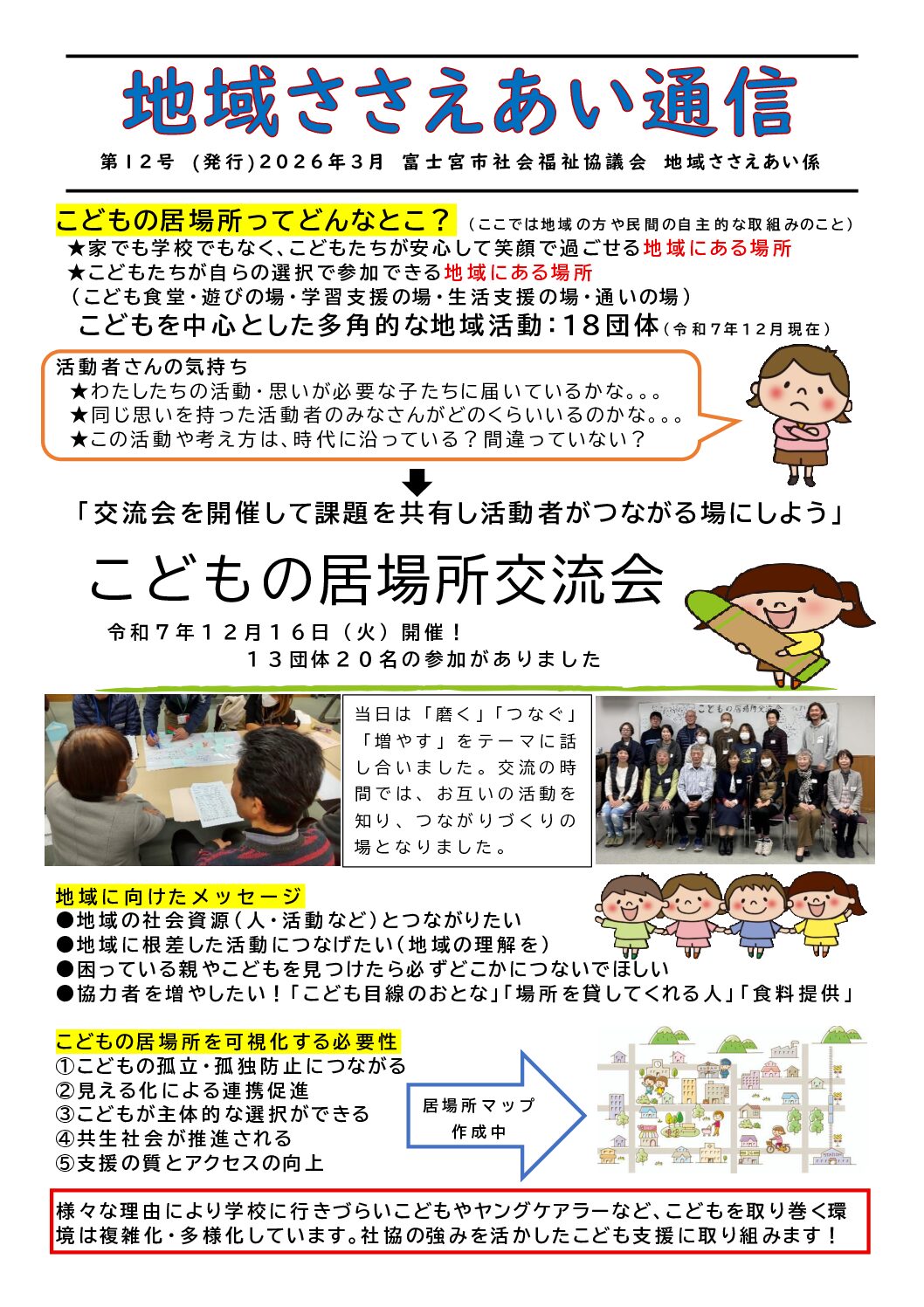 地域福祉活動紹介 ホーム > 地域ささえあい通信 > 第4号(令和2年8月5日) 地域ささえあい通信 第10号 新着情報 新着情報 すべて お知らせ 研修・講座 募集 情報を探す 目的別に探す 知りたい・学びたい 参加・協力したい 利用したい 相談したい 対象別に探す 高齢者の方 障がいのある方 子ども・子育て支援 地域福祉 地域活動ボランティア 暮らしの困りごと 富士宮市社協について 富士宮市社協について 社会福祉協議会 寄付・会費について 情報公開 広報紙 共同募金 日赤 団体 各種申請用紙 事業サービス案内 地域活動支援センター 車いす貸し出し 寄り合い処 子育てサロン 地区社協 ボランティア 福祉教育 生活支援体制整備事業 子育て支援センターたっち 地域福祉推進計画 指定相談支援事業 居宅介護支援事業 訪問介護事業 権利擁護 貸付事業 生活困窮者自立支援事業 結婚相談 関連リンク 関連リンク 富士宮市福祉会館 日本赤十字社 赤い羽根共同募金 ボランティア連絡会 富士宮市民生委員・児童委員協議会 ふじさんシニアクラブ